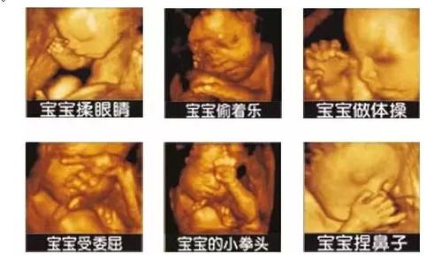 在孕28周左右:此阶段胎儿面部表情也比较丰富,皮下脂肪较以上饱满,胎儿各个部位较前期更加清晰,不仅对以上各类畸形的诊断更加明确,而且胎儿面部的各种表情,如吃手指、喝羊水、打呵欠、哭闹等表情清晰可见。特别是胎儿的某些畸形有可能在中孕晚期或孕晚期才表现出来,所以孕晚期的超声检查是必不可少的。